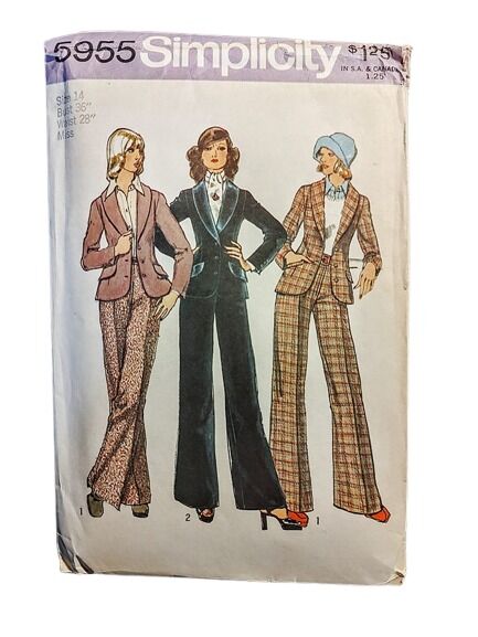 Unused 1970s Vintage Sewing Pattern For A Fitted Jacket And Wide Leg Bell Bottom Pants Simplicity 5955 Bust 36 listed in: